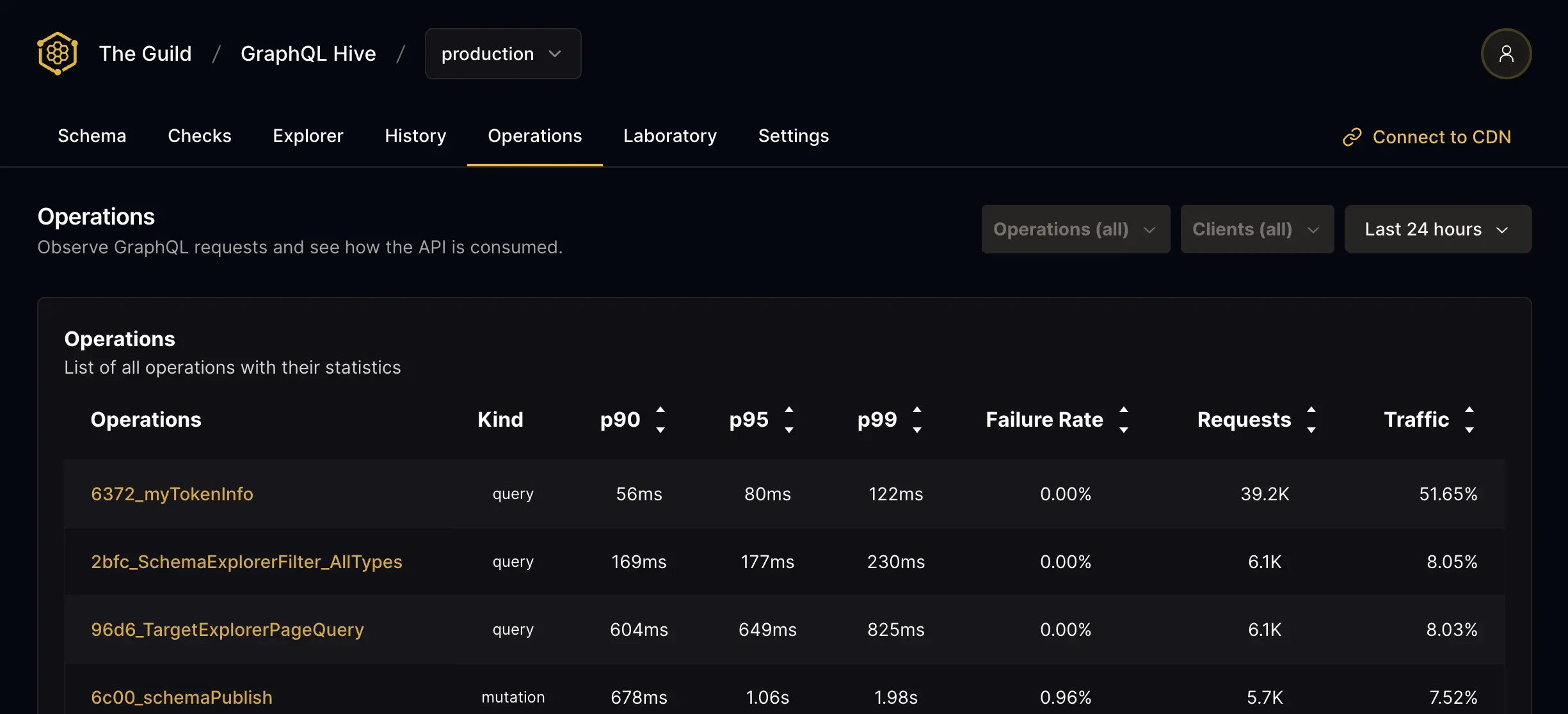 Hive is essential to us handling more than 750M GraphQL requests every month. We ship with certainty that schema changes will not break clients. The atLeastOnceSampler is crucial to capture telemetry from less-often run operations. The schema explorer condenses hours of searching through Github for client usage down to minutes.